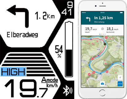 ライディングをさらに充実させるために、ディスプレイCは特定のアプリケーションと通信し追加情報の表示が可能。スマートフォンにアプリをダウンロードしてセットアップすることで、ライド管理、フィットネス トラッキング、マップベースのナビゲーションなどの機能を利用できる。