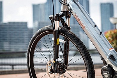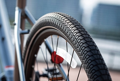 エアボリュームがある太いタイヤでありながら、転がり抵抗も軽減。街中で安定感のある快適な乗り心地を実現。