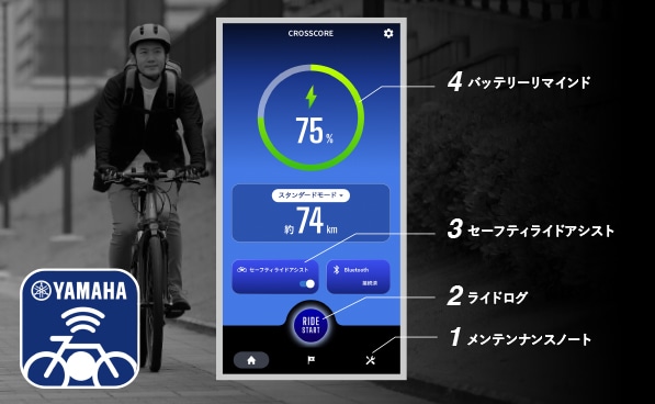 安心のライドと新たなeBikeの楽しみ方を提供する専用アプリ「YAMAHA e-Bike Link」