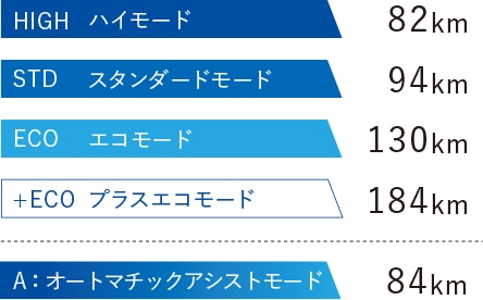 | オートマチックアシストモード | 84km | |