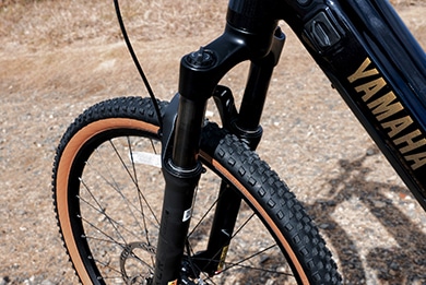 オフロード専用設計のサスペンションフォークが衝撃を吸収。未舗装路でもしなやかで確かな走行性を発揮。