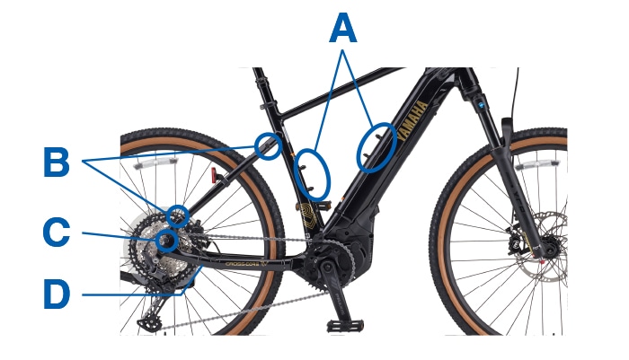 A ボトルケージマウント×2(Sサイズはダウンチューブ側1か所)B キャリヤ用マウント