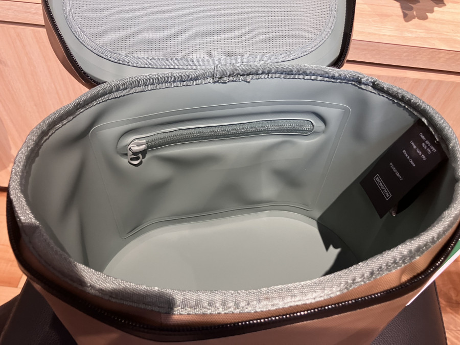 外側にある止水ジッパー付きのポケットは素早く取り出したい小物の収納に便利です。