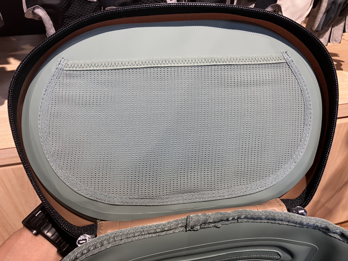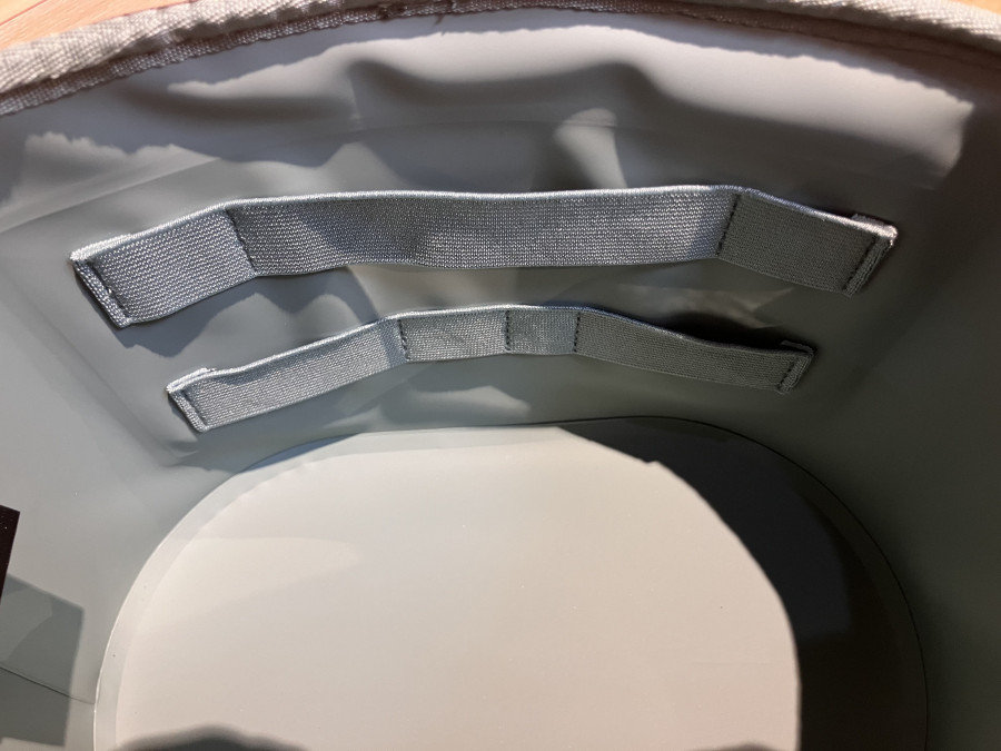内部には、メッシュポケットと伸縮するストラップがあり、小さな荷物の仕分けに便利です。