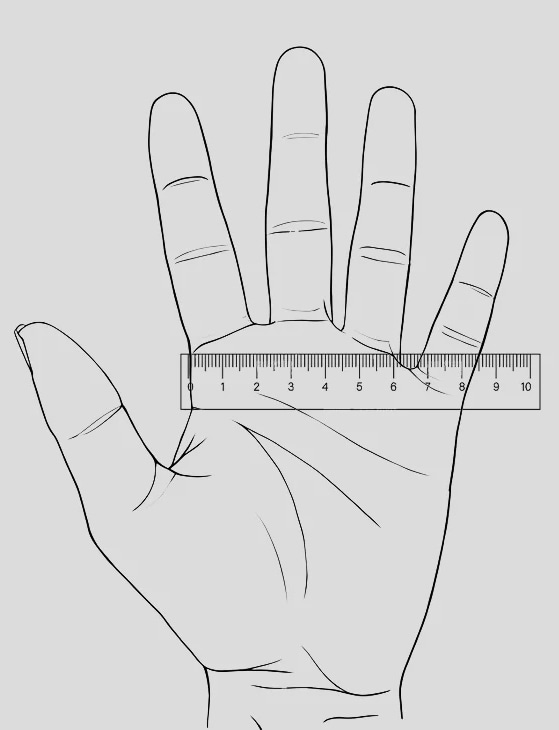 親指の付け根(ウェブ)から、親指の幅を除いた手の幅を測定してください。