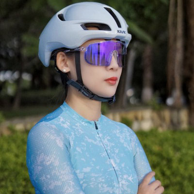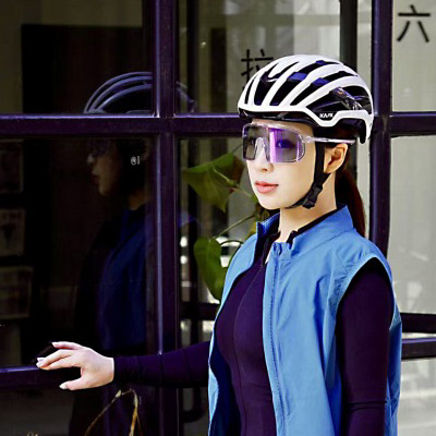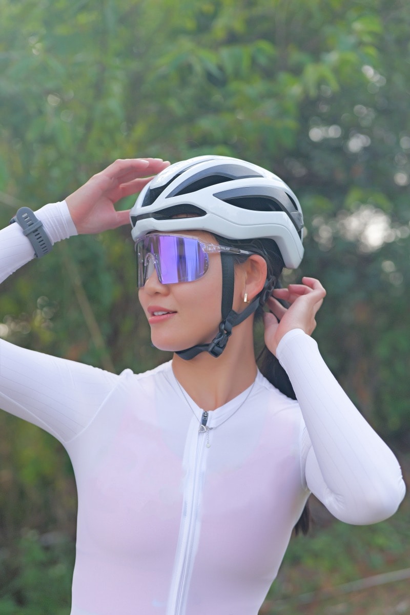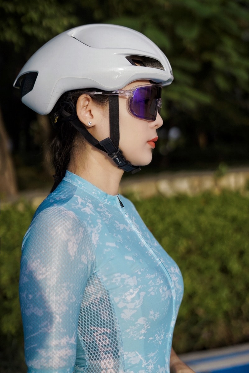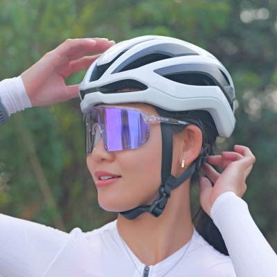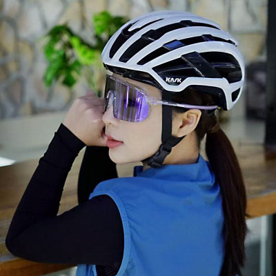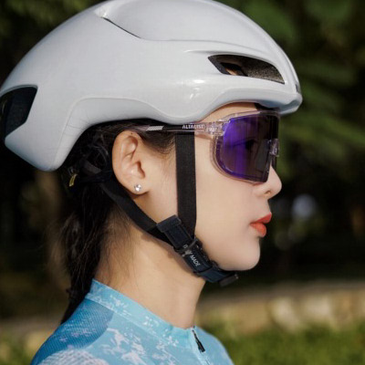 サングラス上部が眉までかかって、ヘルメットとの一体感があり好印象。交換式のノーズピースに顔とレンズの距離が取れるタイプがあって、鼻が低いため顔の皮脂がレンズに付着することが避けられなかったのですが解消されました。