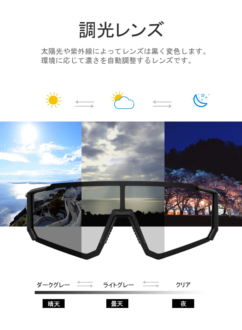 | 材質 | レンズ:ポリカーボネート フレーム:TR90+TPE+メタル |
