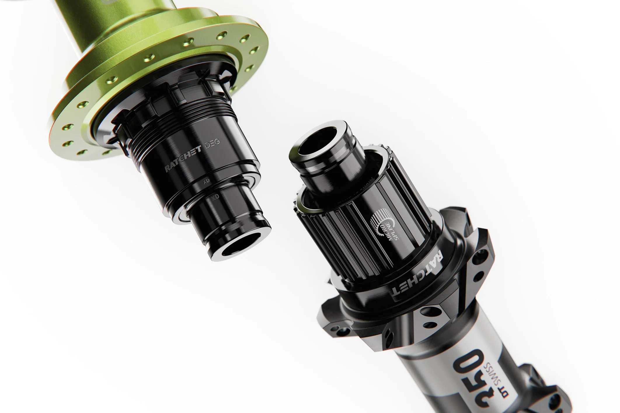 350ハブには、定評のあるRatchetシステムと、噛み合い性能に優れたRatchet DEGシステムが用意されています。