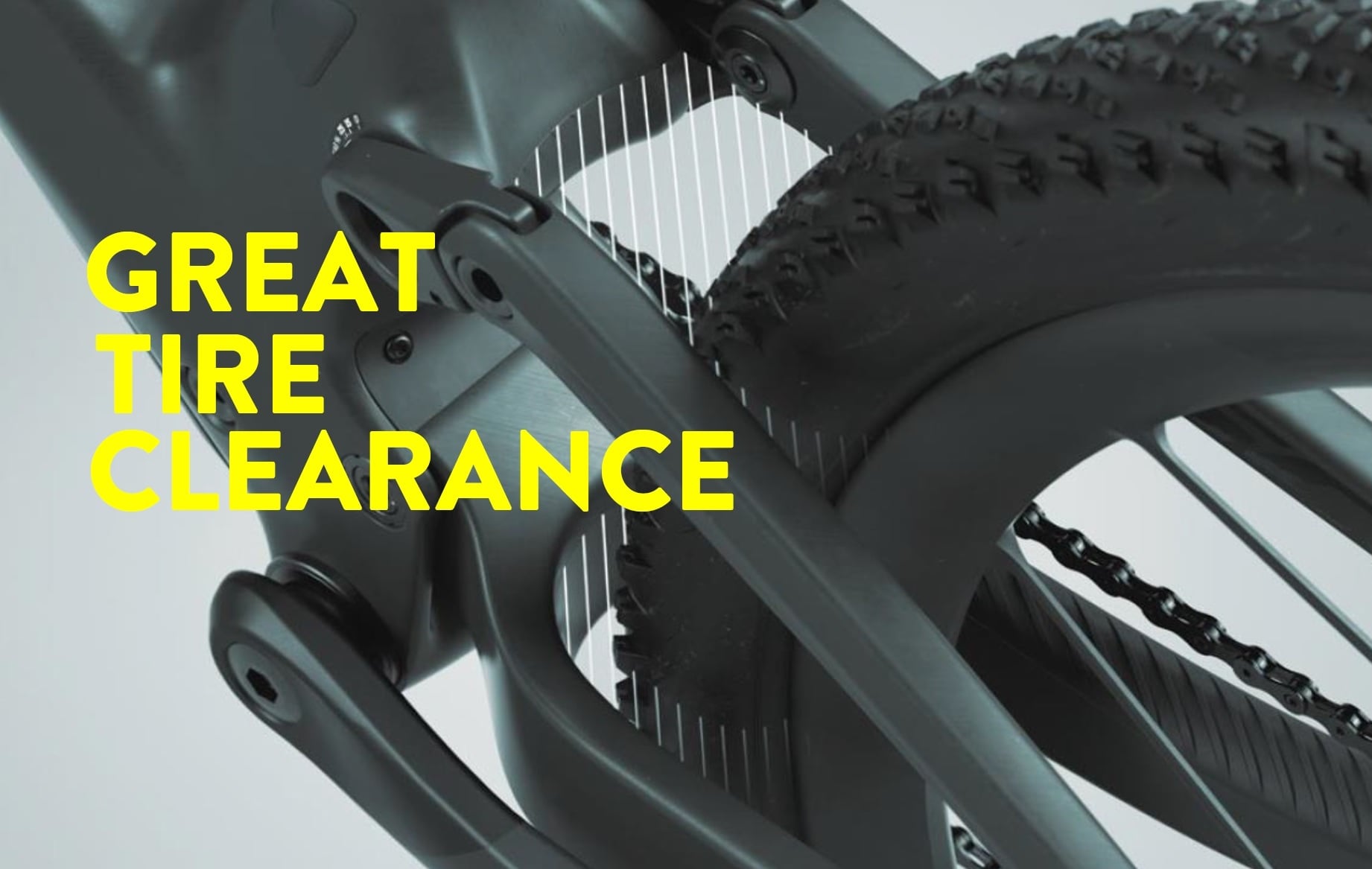 それにより、タイヤクリアランスを非常に大きく設ける事が可能になっています。