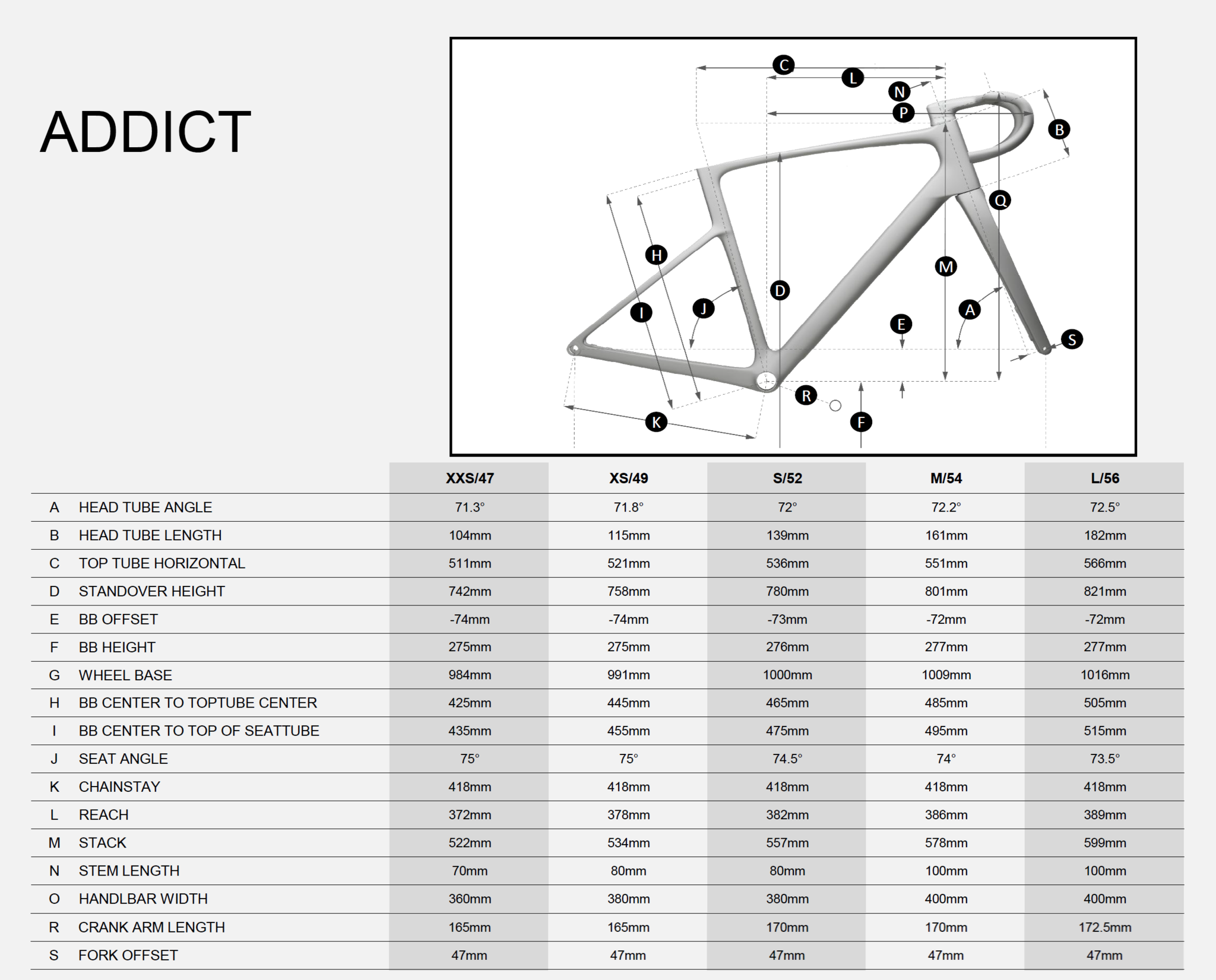 ADDICTはスペーサー無しの状態でADDICT RCに35mmスペーサーを入れた際と同等であり、より直立した快適なポジションを保証します。