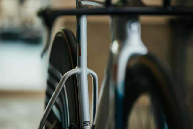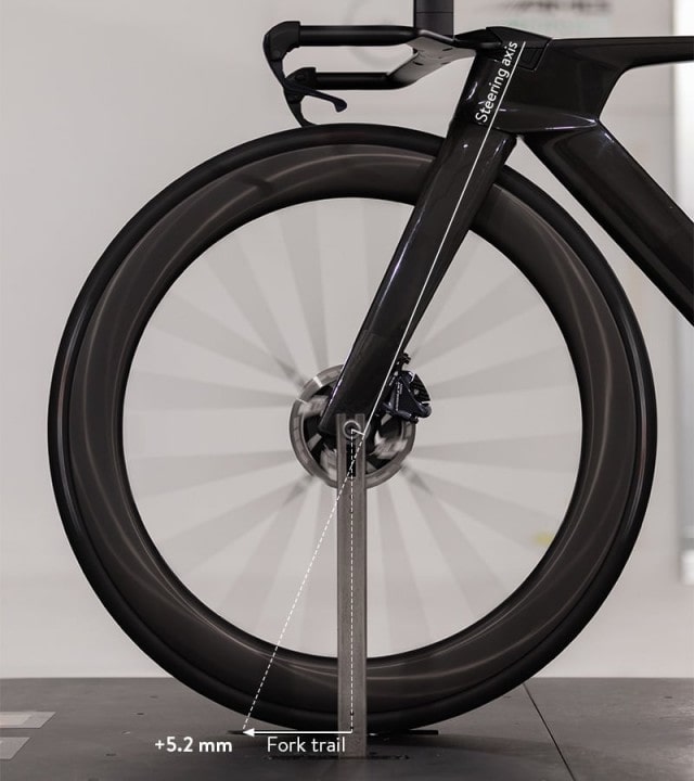 フォークオフセットを短くし、トレールを5.2mm増やして、より安定した乗り心地を実現しました。これは風洞実験上で結果を出すための設計ではなく、より安定したバイクはより安定したライダーポジションにつながり、実際の走行で速いことが分かったためです。
