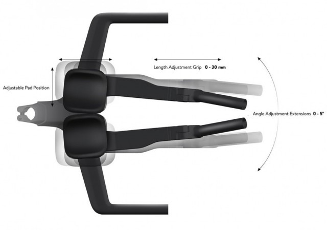 DHバーを最大5°調整、手の間隔に合わせることができます。