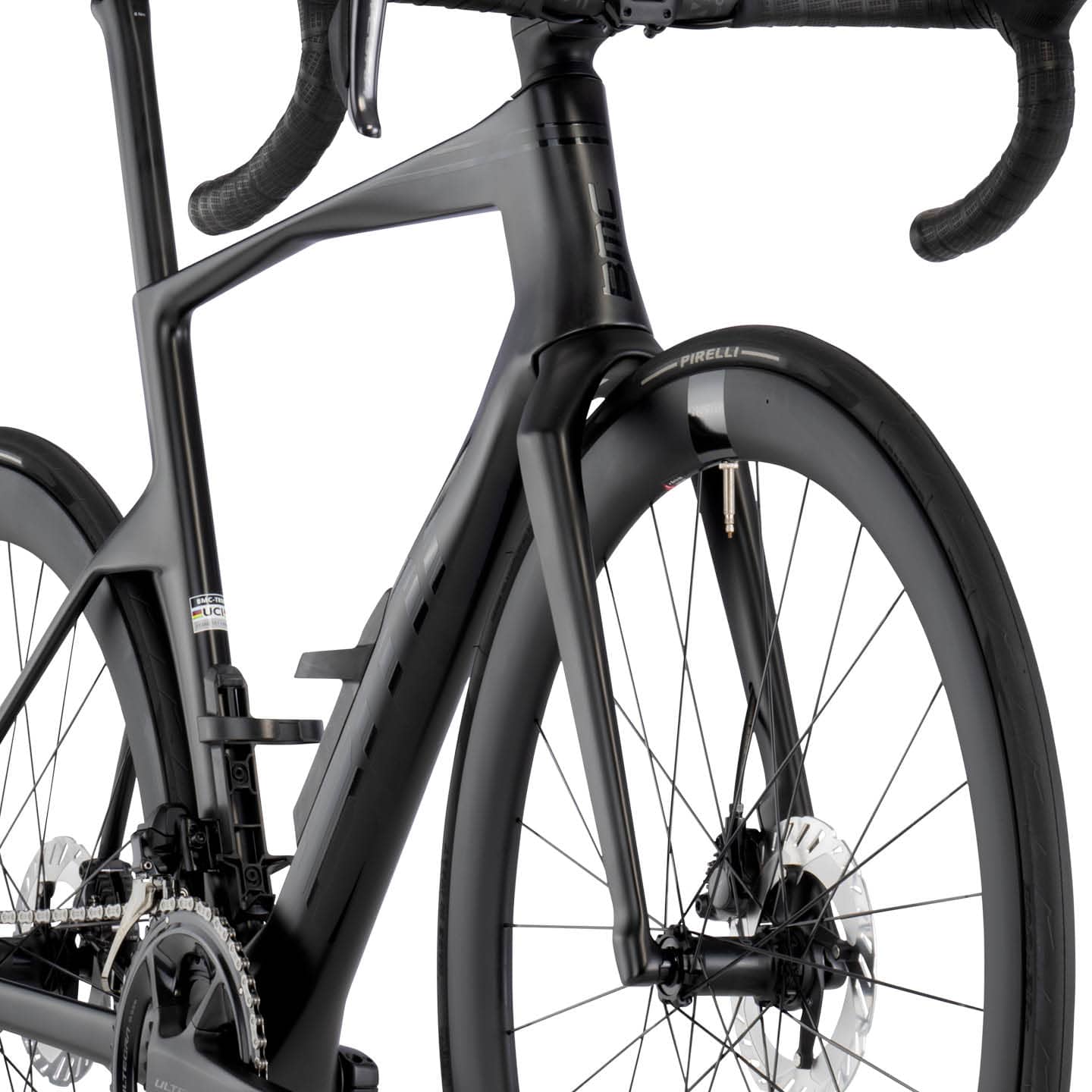 超幅広の平行フォークレッグは、他のBMCモデルと異なるデザインです。高速巡行時には、フロントホイールから大量の乱気流が発生します。