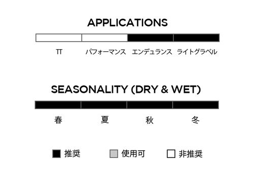 26TPIナイロンケーシング構造と、トレッドの下には耐カット性の高い生地の層が追加されており、様々な条件で優れた耐パンク性能を提供します。仕様