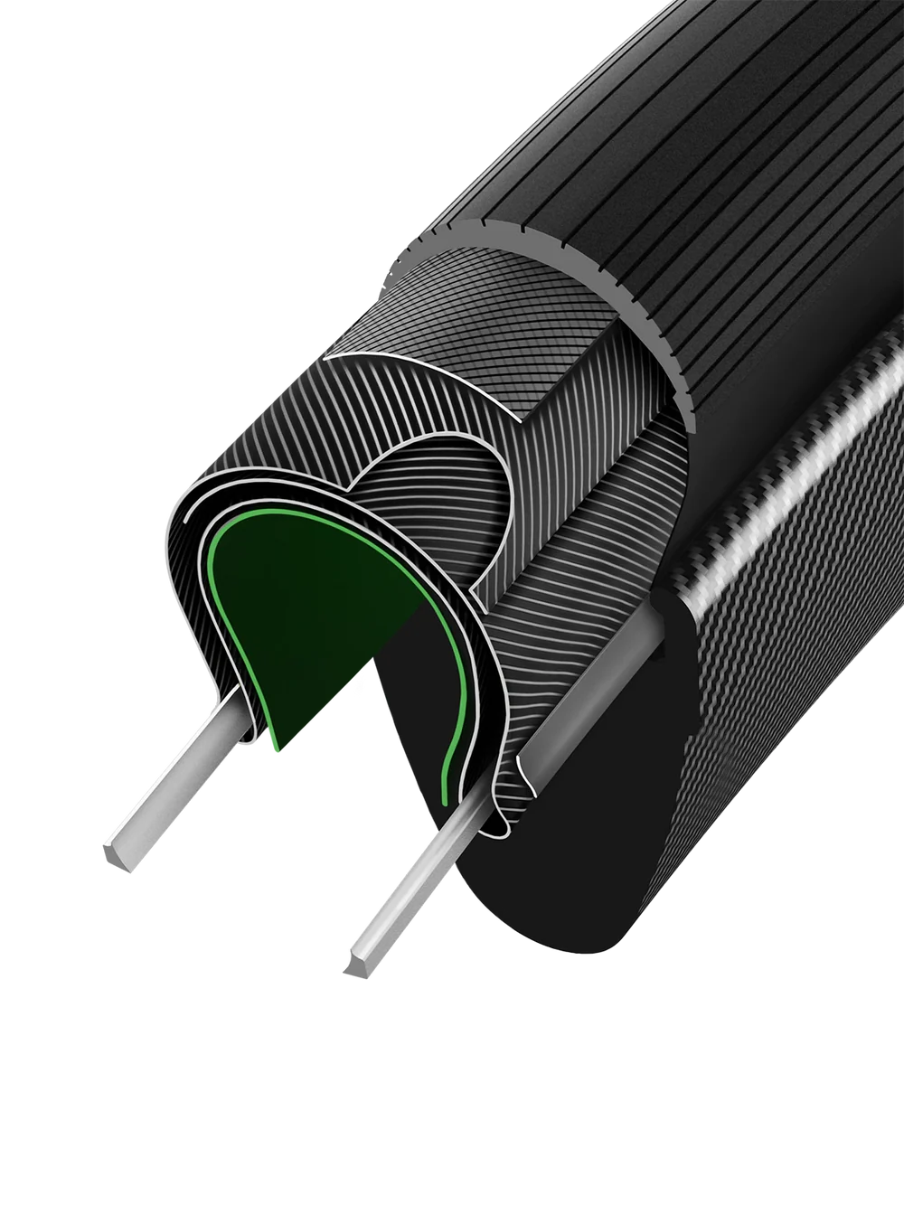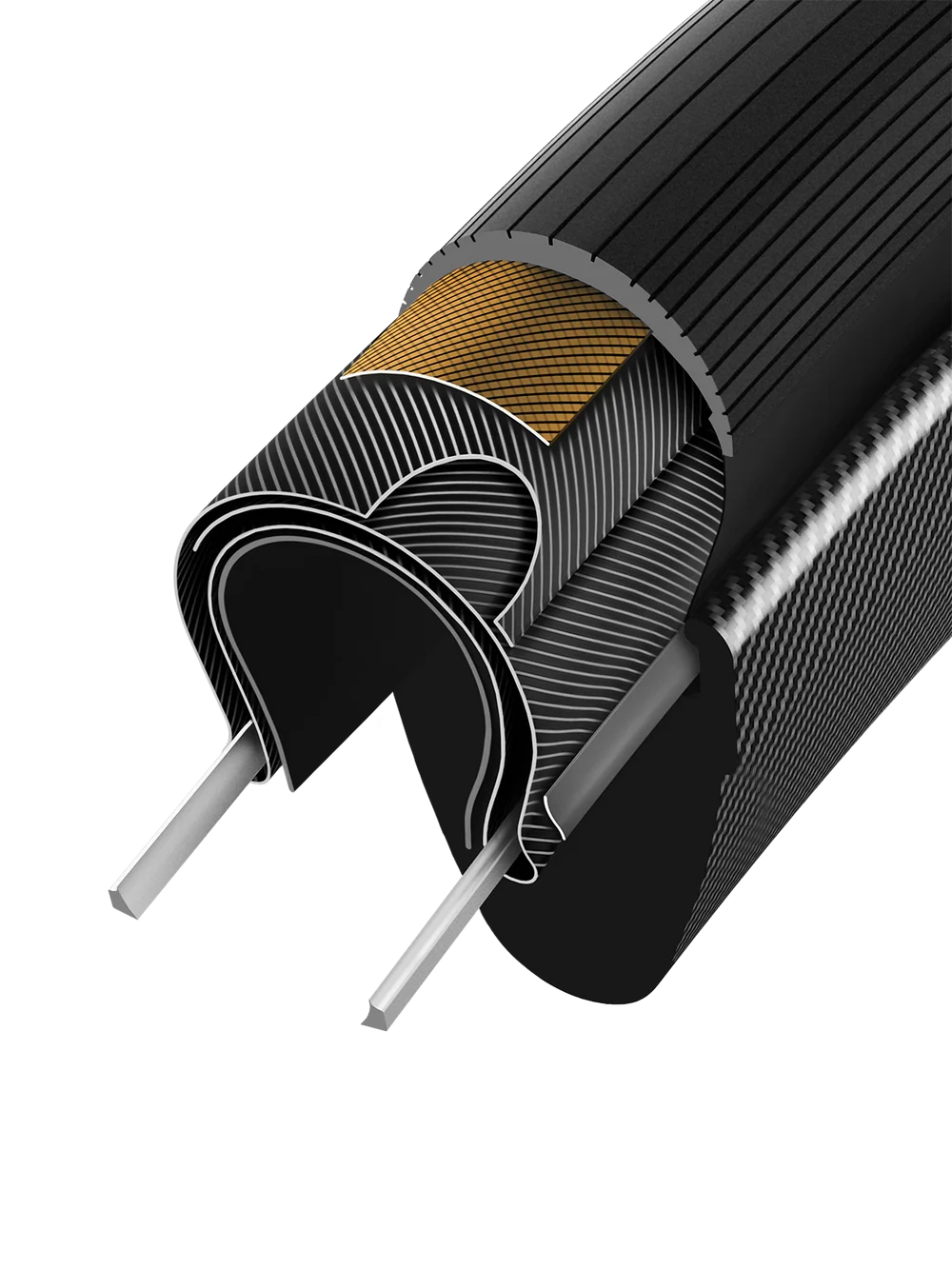 耐久性、長寿命、信頼性。レースと長距離トレーニングの両方に対応するよう設計された、信頼性の高い耐パンク性に優れたプラットフォーム。太めのスレッドが毎日のインターバルトレーニングの過酷な状況にも耐え、同時に毎週のクリテリウムシリーズのスピードにも対応します。
