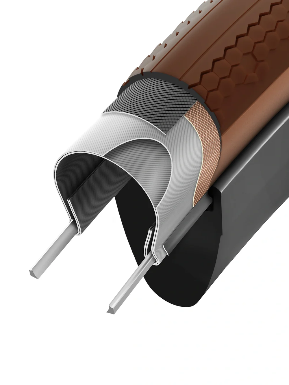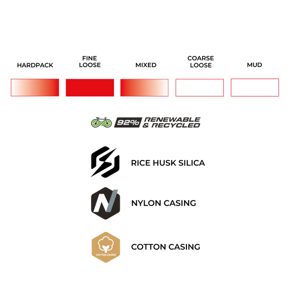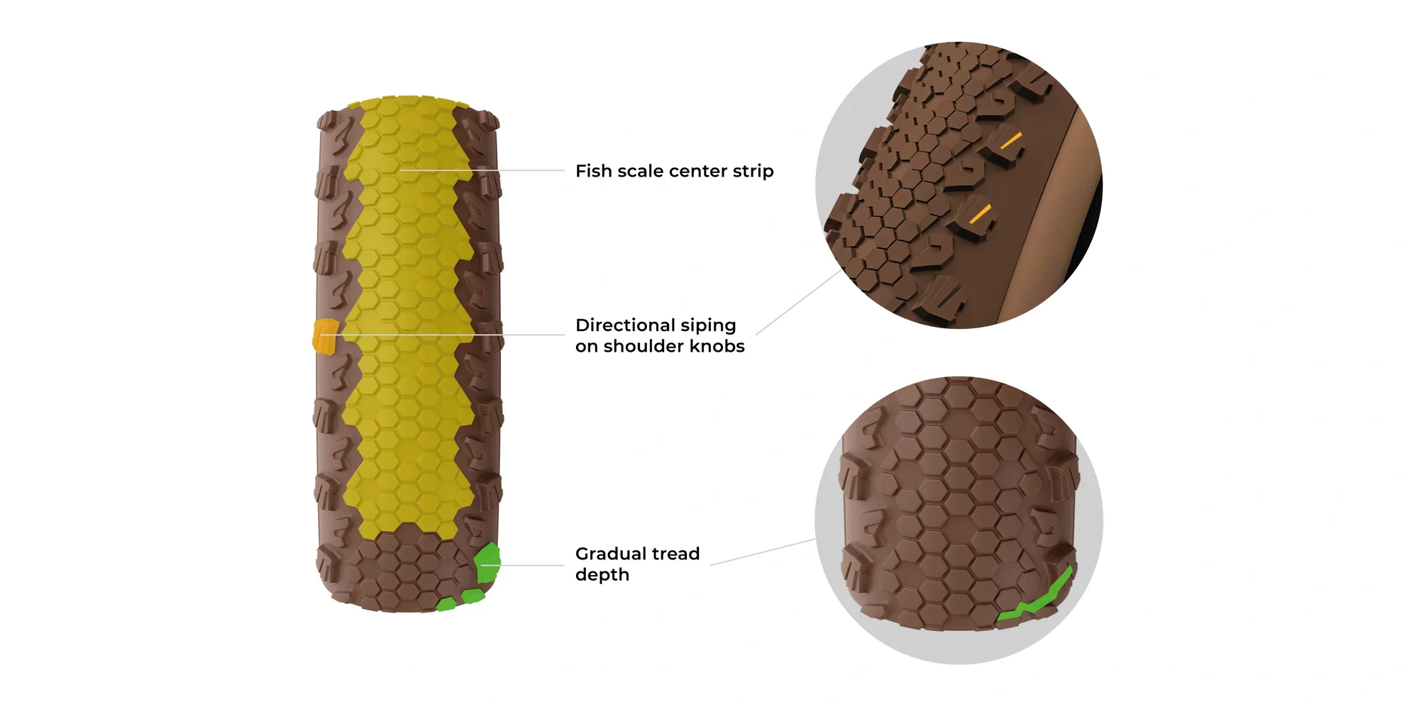 グラベルレースの競争力を高めるために特別に開発された次世代コンパウンドブレンド。様々な路面で卓越したスピードとグリップを発揮します。