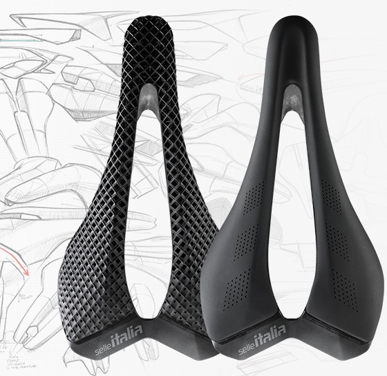 中央の穴がないタイプで、必要な部分にのみ手作業でパッドを施すことで、妥協のない軽量性能と快適さを両立したサドルです。
