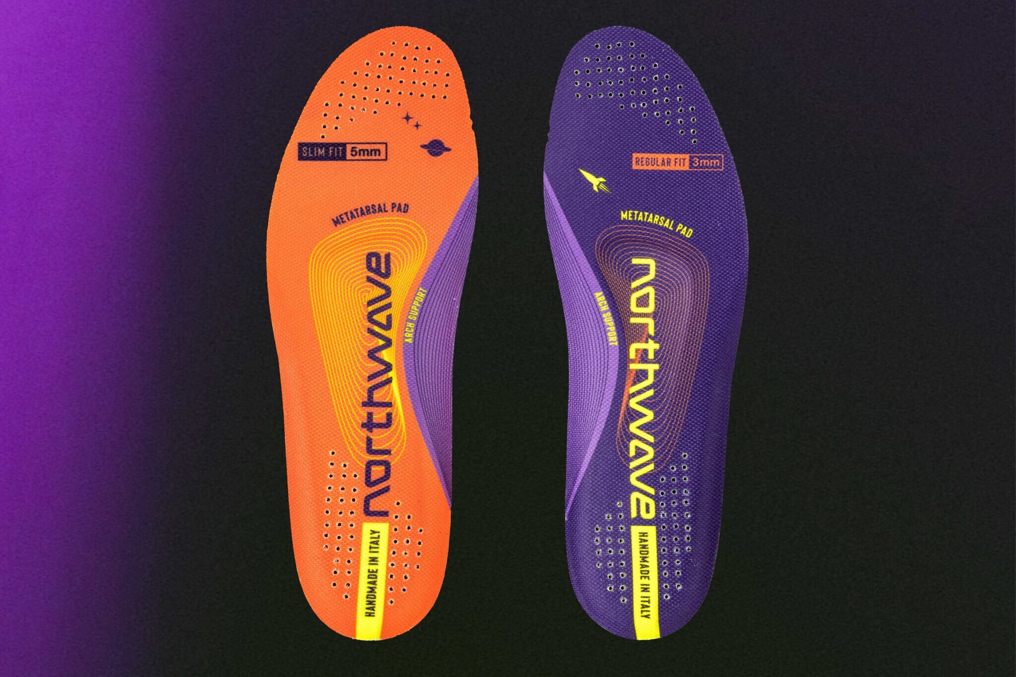 カスタマイズできる厚さ5mm(スリムフィット)と厚さ3mm(レギュラーフィット)のインソール2枚入り仕様