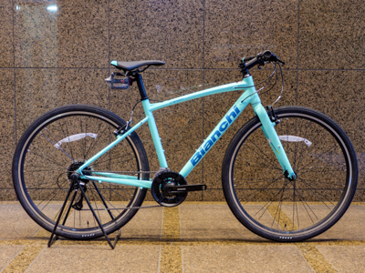 BIANCHI C SPORT2 Discは、街乗りやフィットネスに最適なクロスバイクです。軽量アルミフレームにシマノ製ドライブトレインを搭載し、油圧ディスクブレーキで制動力も高く、雨天時でも安心。快適性と操作性のバランスが良く、初心者にも扱いやすいモデルです。