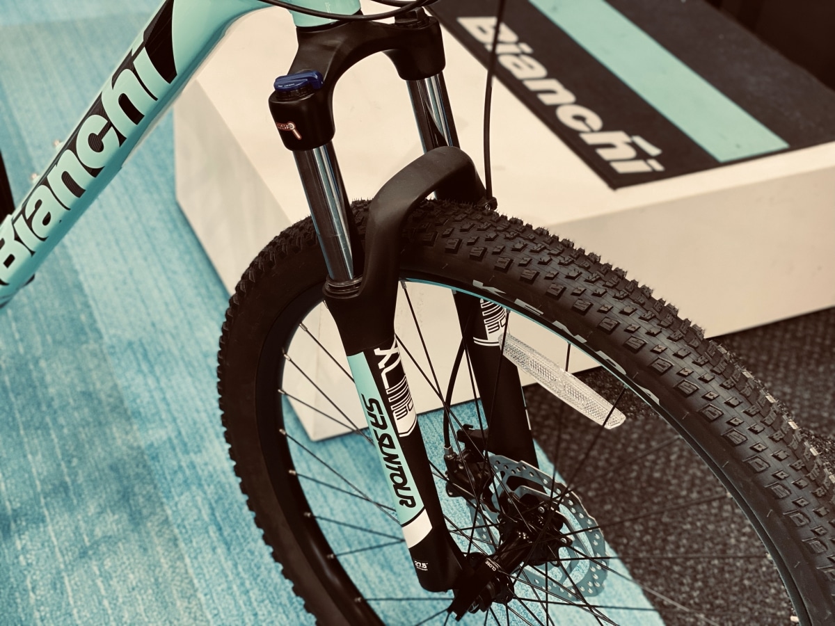 本モデルには、トラベル量100mmのサスペンションフォークを搭載。