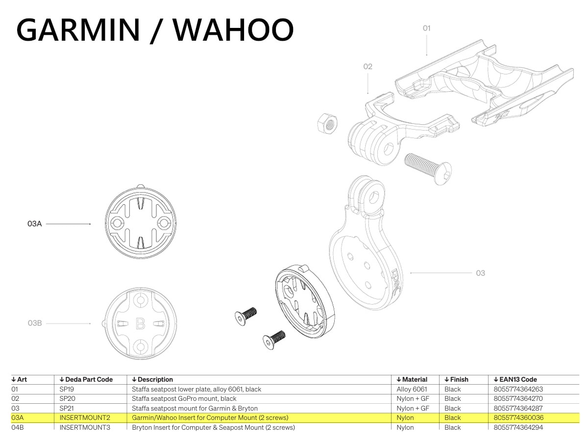 DEDA ( デダ ) サイクルコンピューター オプション STAFFA SEATPOST MOUNT KIT 用 ( スタッファ シートポストマウント キット用 ) インサート コンピューターマウント ねじ2個付属 GARMIN / WAHOO 用