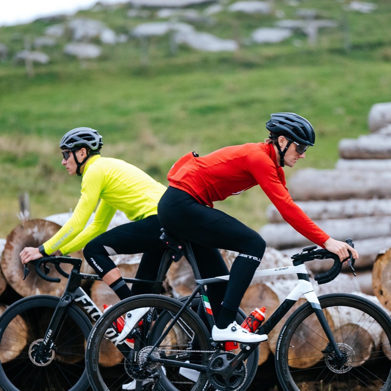 CASTELLI ( カステリ ) 長袖ジャージ ENTRATA THERMAL JERSEY ( エントランタ サーマル ジャージ ) 870 シルバーグレー / ブリリアントオレンジ L