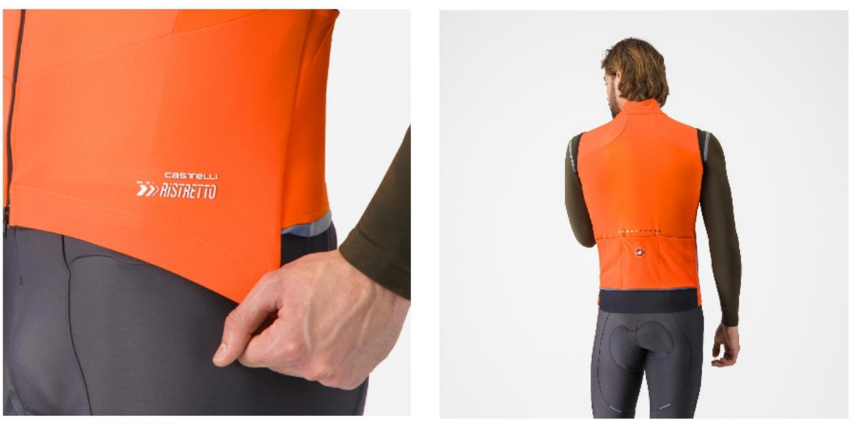 涼しい気候に最適なベスト。カステリ リストレット技術が保温性を保ちつつ、空気の流れを制限して体の中心部をドライに保ちます。