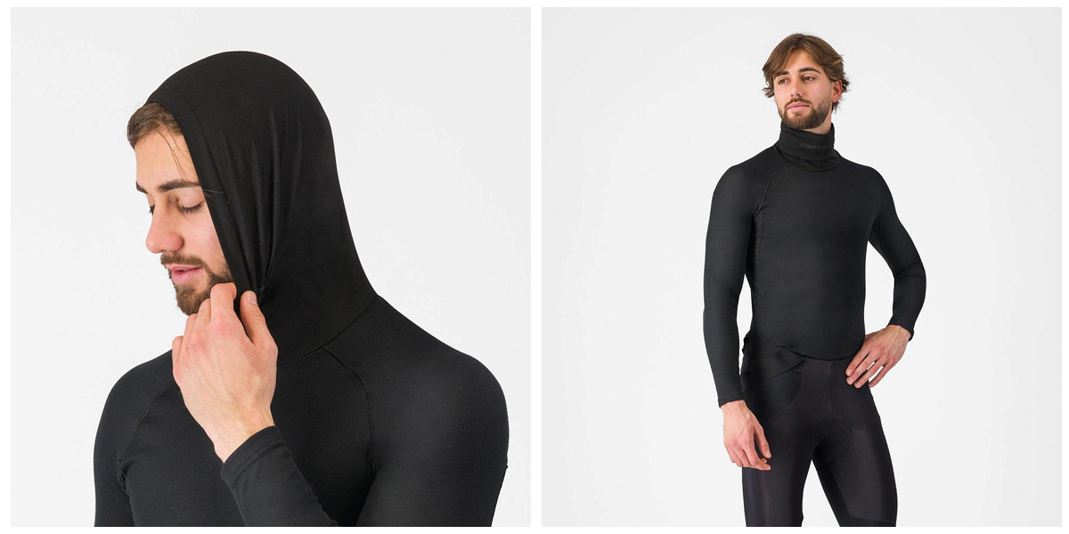 カステリの最も暖かいベースレイヤーにシームレスネックウォーマーを一体化。