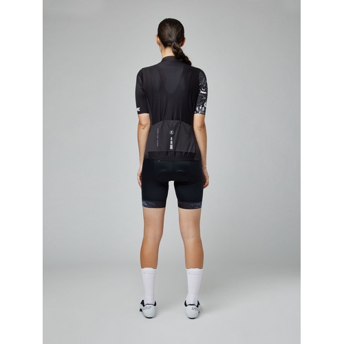 あらゆる体型にフィットする構造で、クローズドでエアロダイナミクスに優れた素材を使用した生成りの袖と、通気性を最大限に高めるメッシュの背面とのコントラストが美しい。背面中央のポケットに採用されたピクセル・テクノロジーは、低照度下でのライドを安全にサポートする。