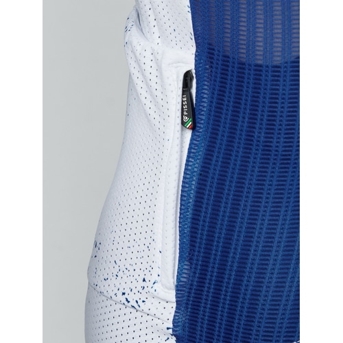 ドライネット構造とアドバンスド・フィット・テクノロジーにより、最高の通気性と完璧なエアロダイナミクス、レーシング・フィットを実現。背中のパンチングポップファブリックは、最高の通気性と爽やかさを提供し、中央のバックポケットに採用されたPixelテクノロジーは、暗いコンディションでも最高の視認性を確保する。