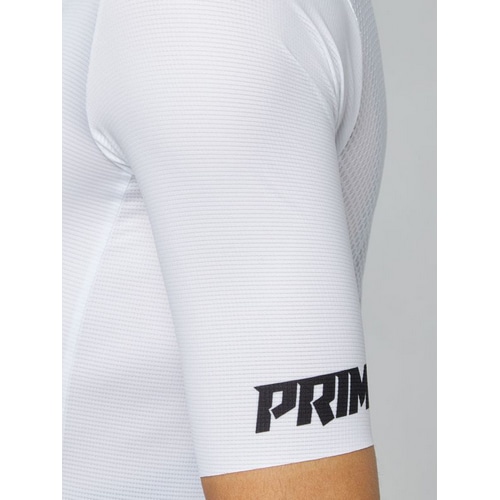 プライムショートスリーブジャージは、前身頃、袖、後身頃に3種類の異なる素材を使用し、快適性、パフォーマンス、通気性の適切なバランスを実現。