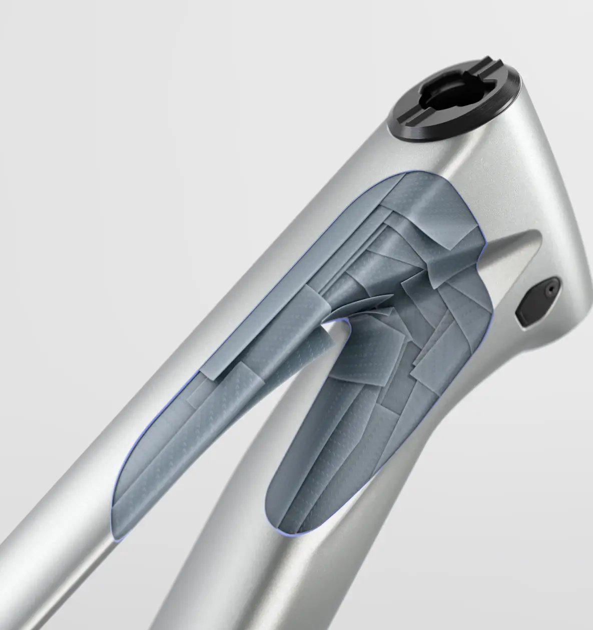カーボンの織り方を選ぶことで、強度を損なうことなくフレームのしなやかさ調整して、理想的な前後三角の剛性を実現しました。その結果、荒れたオフキャンバー路面でもグリップと安心感が向上し、肝心な場面で貴重な数秒を節約できます。