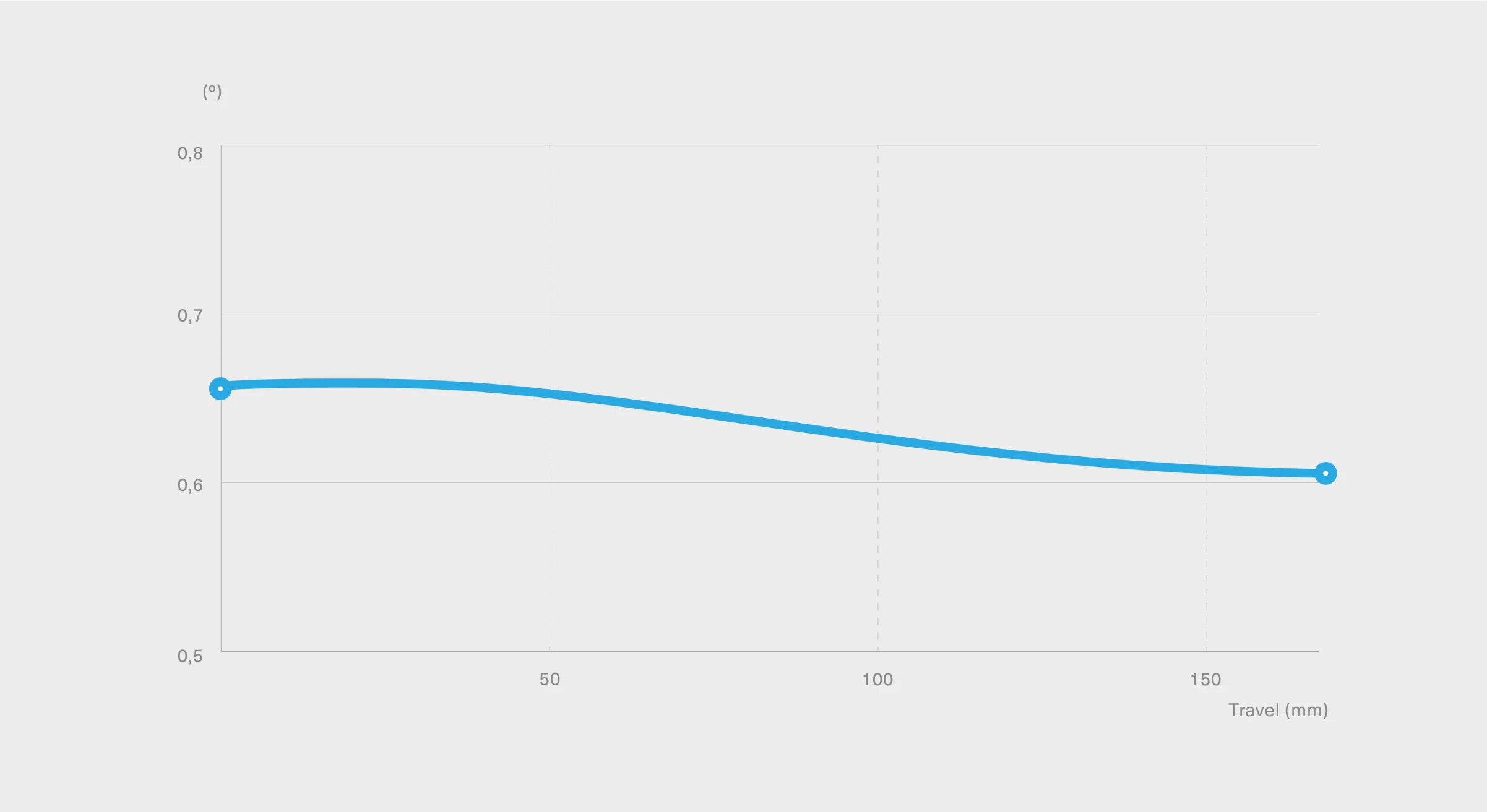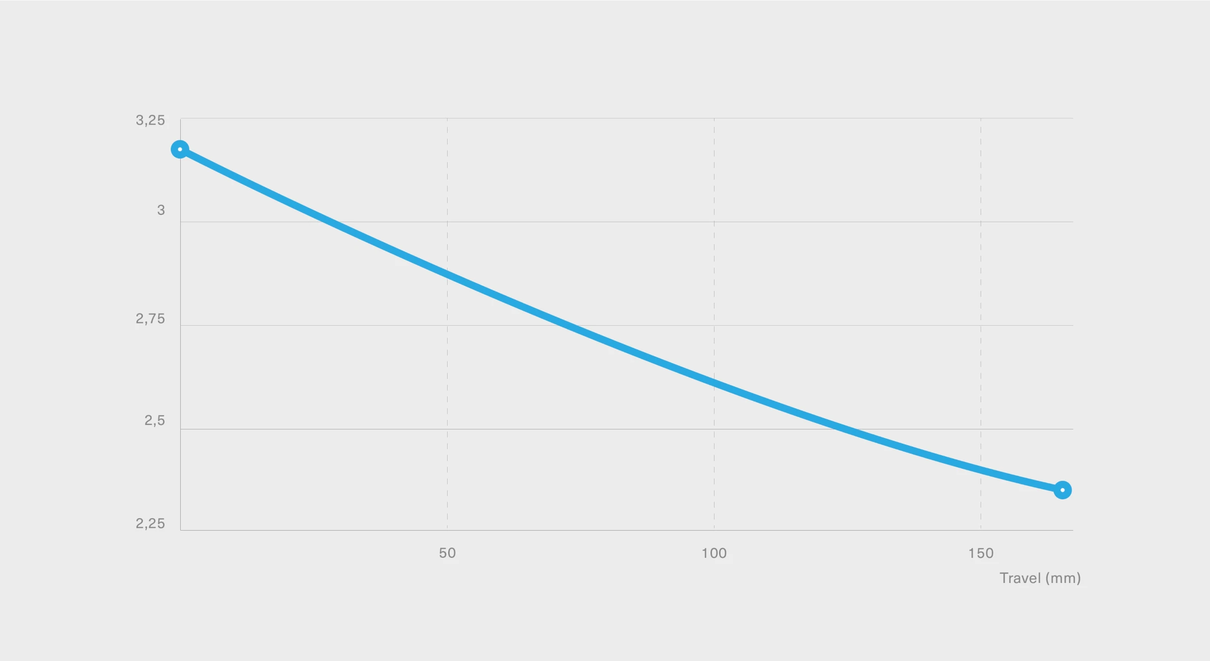 プログレッシブ・レバレッジ・カーブとは、ストロークがを深く進むにつれてサスペンションの動きが硬くなることを意味します。この挙動はフレームとショックアブソーバーの両方によるもの。