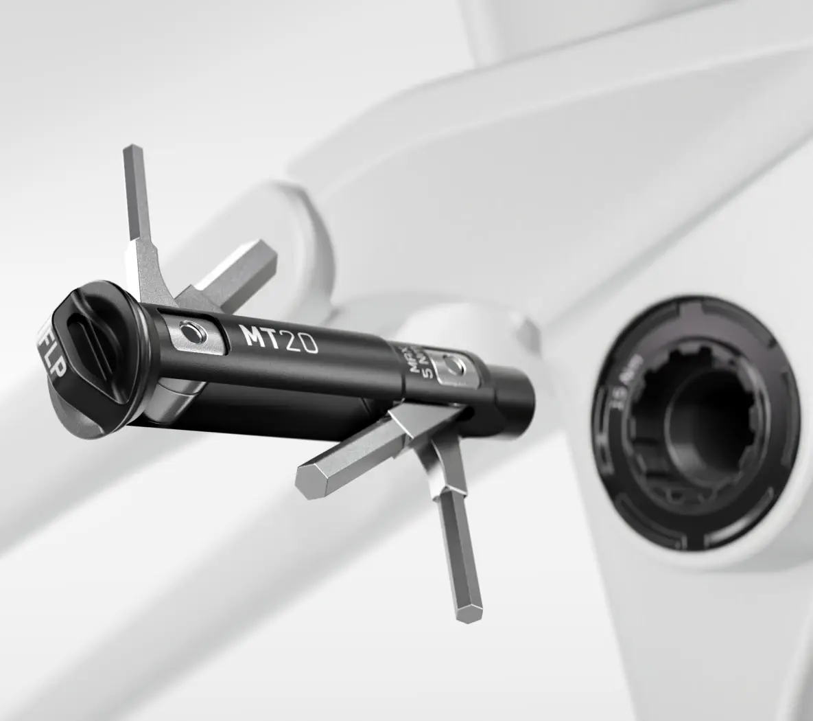 FLP (Fully Loaded Pivot)には、2、3、4、5の六角レンチが付いたマルチツールが付属し、マグネットでしっかりと固定されます。また、リアアクスルには6mm六角レンチが付属し、工具を取り出さずにすばやく調整できます。