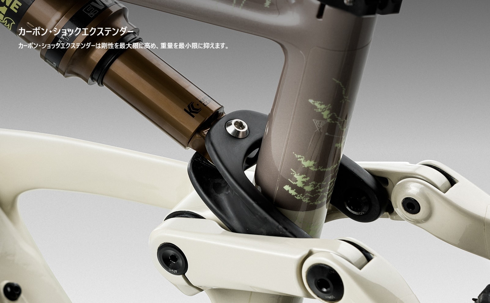 それぞれのオッカムには、目的に最適なショックエクステンダーが装備されています。SLには軽量カーボン、LTにはアジャスタブルアルミ。