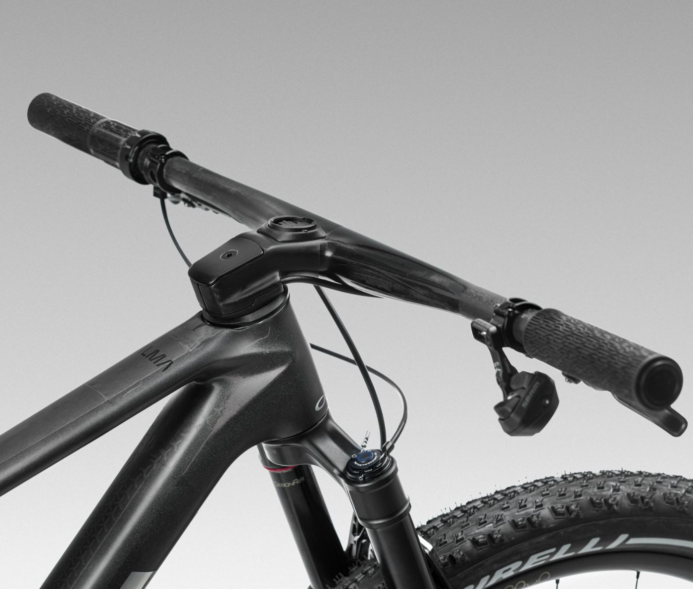 まったく新しいカーボン製コックピットは重量265グラムで、コントロール性が向上し、最大3本のケーブルをSICに統合できます。バー幅760mm、マイナス17°のステム角度、75mmまたは90mmのステム長で、コンピューターマウントを統合したモデルもございます。