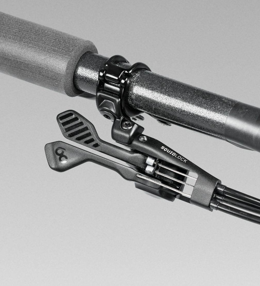 効率性という点では、少ない方がより良いでしょう。Squidlockリモコンを使えば、親指でクリックするだけで、必要なものがすべて手に入ります。 2つのレバーで、バーから手を離すことなく、ドロッパーポストのコントロールと3つのショックロックアウト位置へのアクセスが可能。コンパクトで信頼性の高いSquidlockは、シマノまたはSRAMのブレーキクランプと一体化し、多くのサスペンションシステムに対応します。