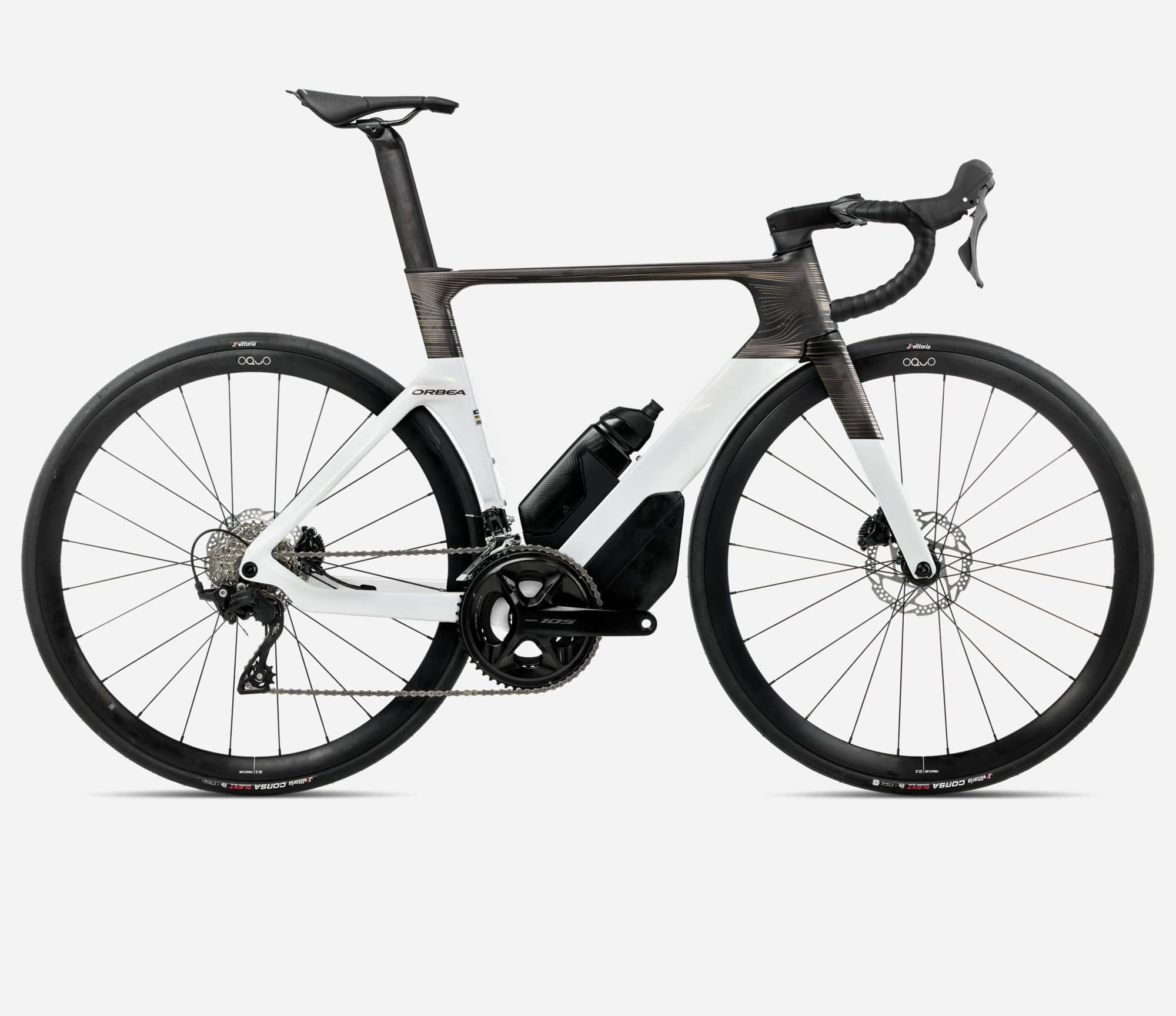 | Frame | Orbea Orca Aero Carbon OMX disc, monocoque construction, HS 1,5", BB 386, powermeter compatible, Thru Axle 12mm x 142mm rear, thread M12x2 P1, Speed release compatible, internal cable routing, EC/DC compatible. |