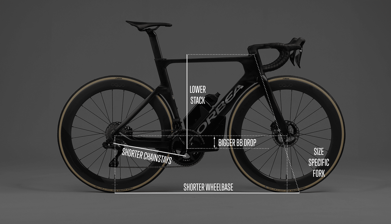 低めのスタック値と大きめのBBドロップで、空力性能と安定性が向上。