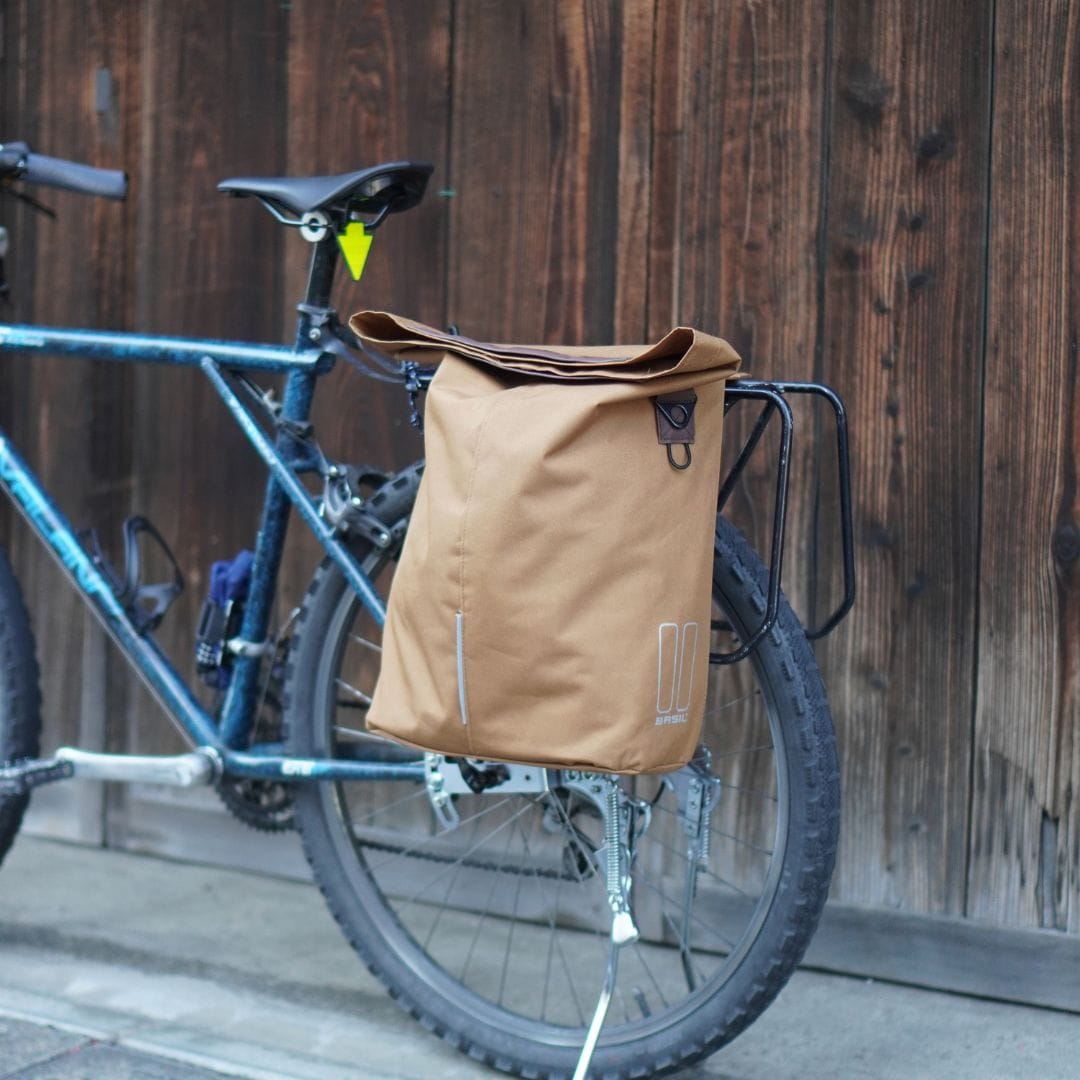 - カジュアルなデザインで自転車から降りても自然なスタイルで使えるサイドバッグ