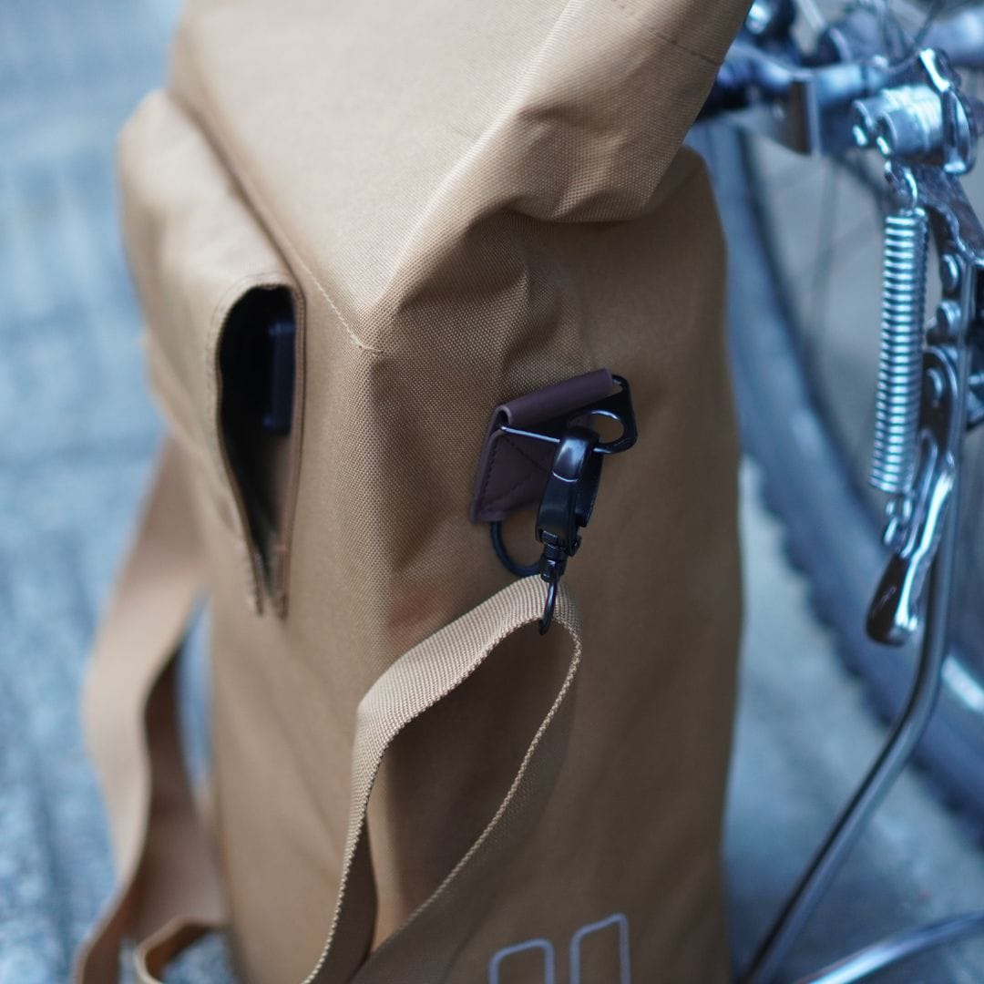 フックはカバーで覆えるため、自転車から降りたら普通のバックと変わらない見た目で使用可能
