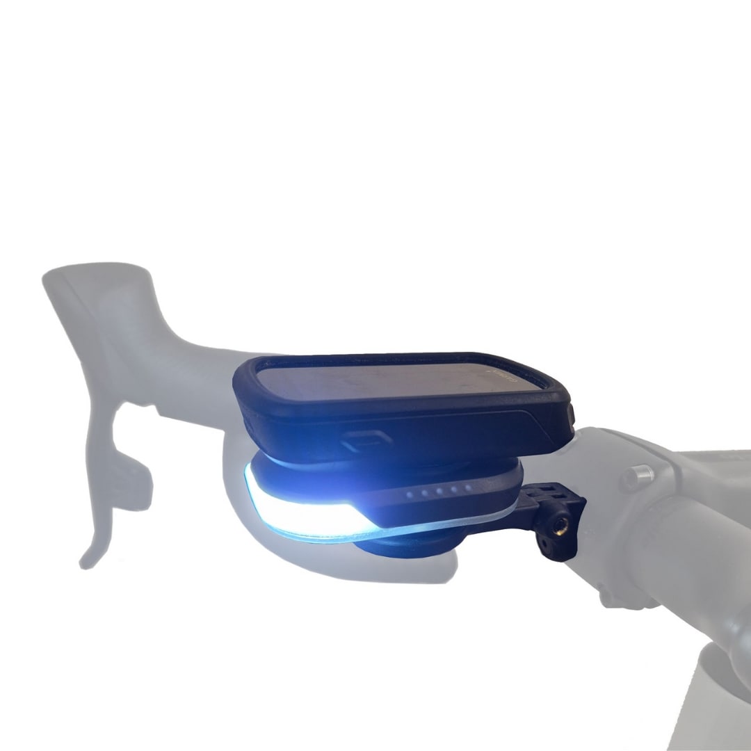サイクルコンピューターとマウントの間に装着するスマートな薄型フロントライト