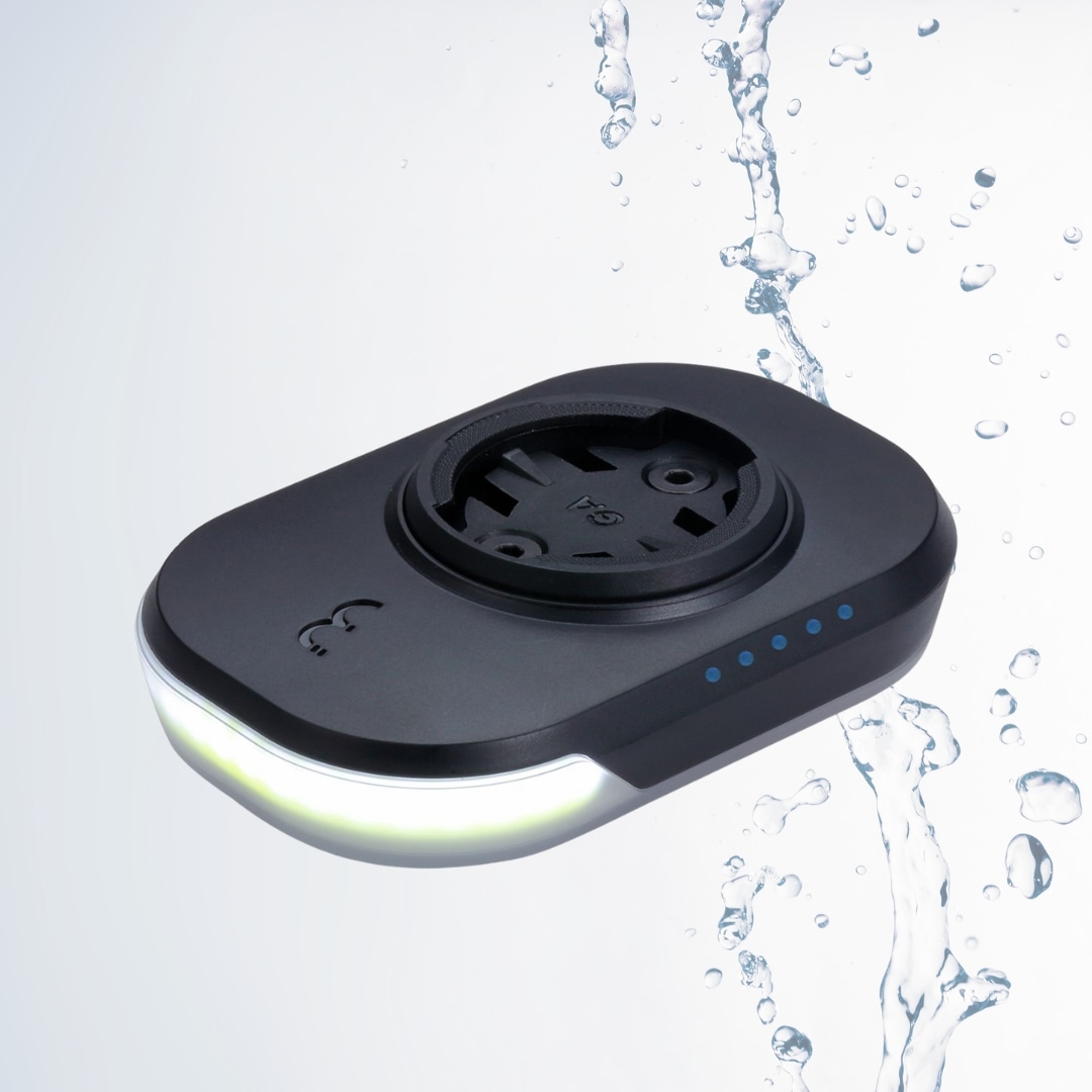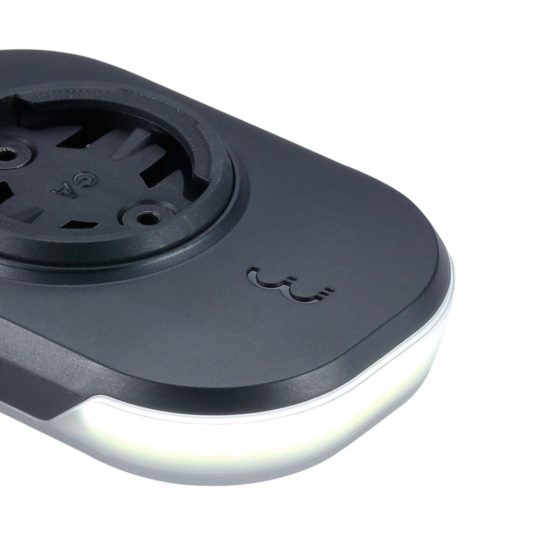 - サイクルコンピューターとマウントの間に装着するスマートな薄型フロントライト