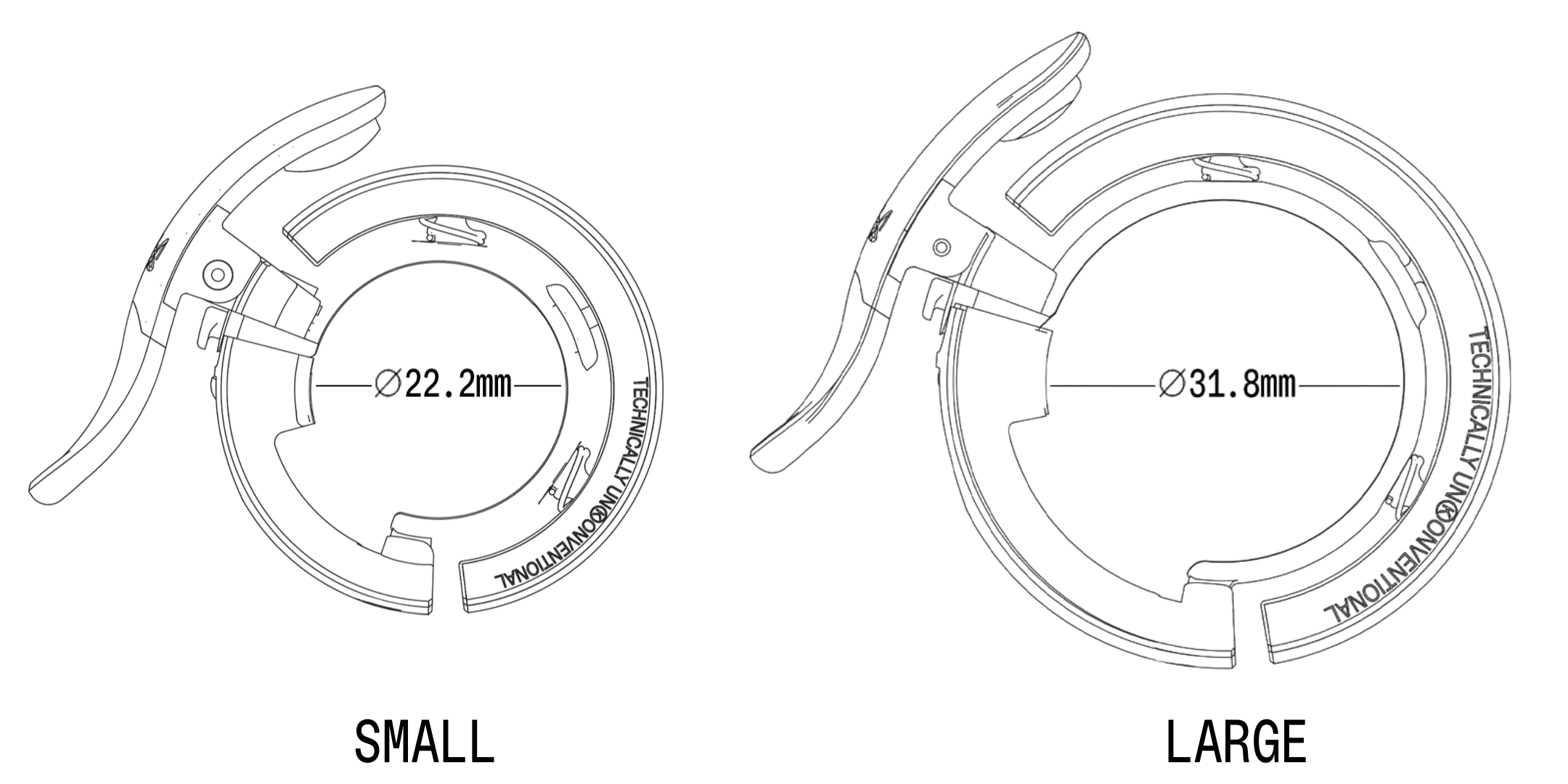 ラージサイズのOi Primaは、25.4mm / 26mm / 31.8mm*のハンドルバーに対応しています。
