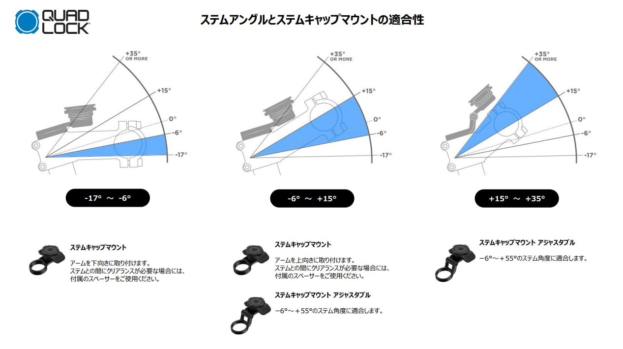 ステムアングルとステムキャップマウントの適合性