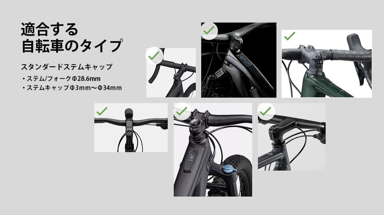 よりスタンダードなΦ28.6mmのステムに適合します。マウントアームは両面使用できるリバーシブルになっているので、±15°と幅広いのステムアングルに適合可能です。