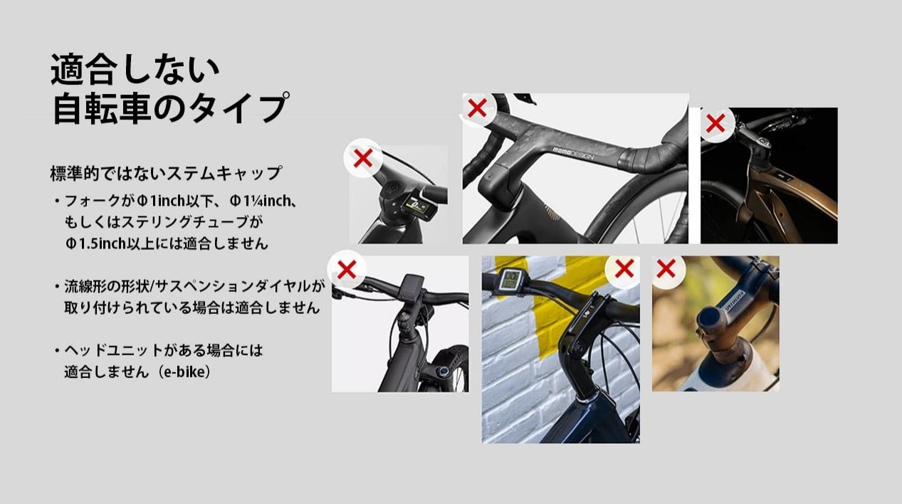 | 主な仕様 | ・アルマイト加工を施した航空グレードの鍛造アルミニウムを使用 ・レバーはショート・ブラックタイプを使用することで、よりすっきりしたデザインに。 ・Φ28mmのステム径に適合します。 ・ステム上にすっきりと収まり、ステムキャップにしっかりと取り付け可能です。 ・+15°から-15°のステム角度の自転車に取り付け可能です。 ・本体は両面使用できる仕様となっております。 そのため、ステム角度により取り付け面をお選びいただけます。 ・スペーサーでクリアランスの調整が可能です。 |