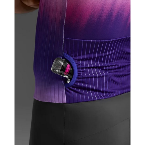 - 両サイドからアクセスできる大型のセンターバックエアロポケットに加え、内側に栄養補給ポケットも装備しています。