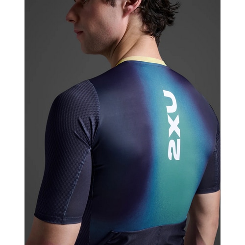 2XU ( ツータイムズユー ) トライスーツ AERO HEX SLEEVED TRISUIT ( エアロ ヘックス スリーブ トライスーツ ) ミッドナイト/クールマチャ M