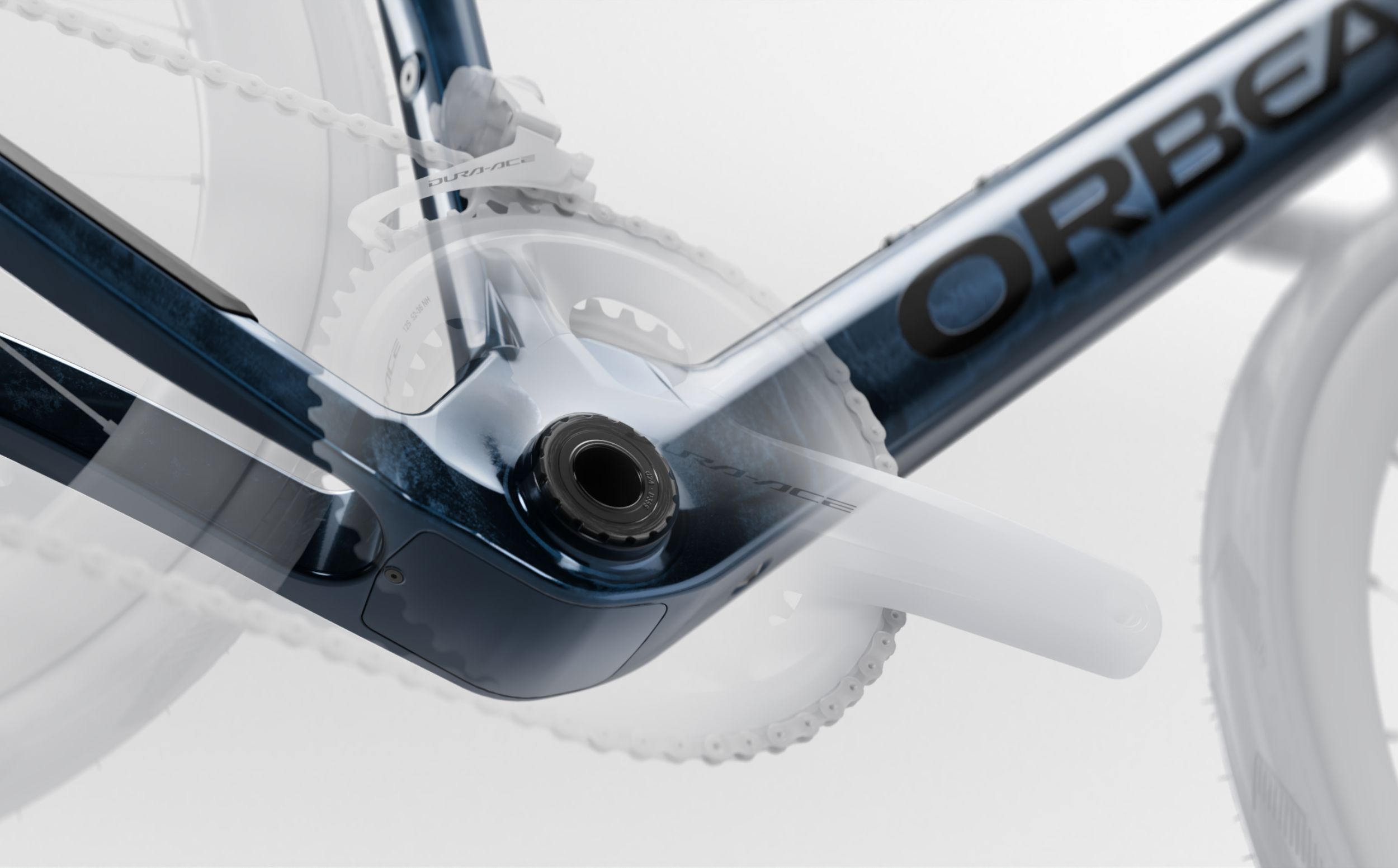 フレームを支える下部スパインは、ねじれや横方向の負荷の大部分を処理します。ORBEAのロードバイクすべてに採用しているのと同じ方法で剛性を高めました。